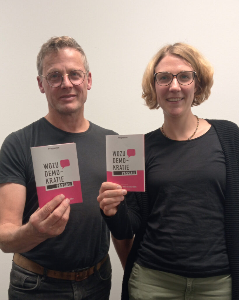 Demokratie – für viele ein abstrakter Begriff, für Markus Muckenschnabl und Johanna Sinn jedoch eine lebendige Aufgabe. Die beiden gehören zum ehrenamtlichen Organisationsteam der Wochen zur Demokratie, einem Demokratie-Festival in Stadt und Landkreis Passau. Seit 2019 organisiert die Initiative jedes Jahr im Herbst zwei bis vier Wochen voller Veranstaltungen rund um demokratisches Zusammenleben.